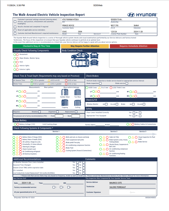 The Hyundai Certified Pre-Owned Vehicle Certification Checklist